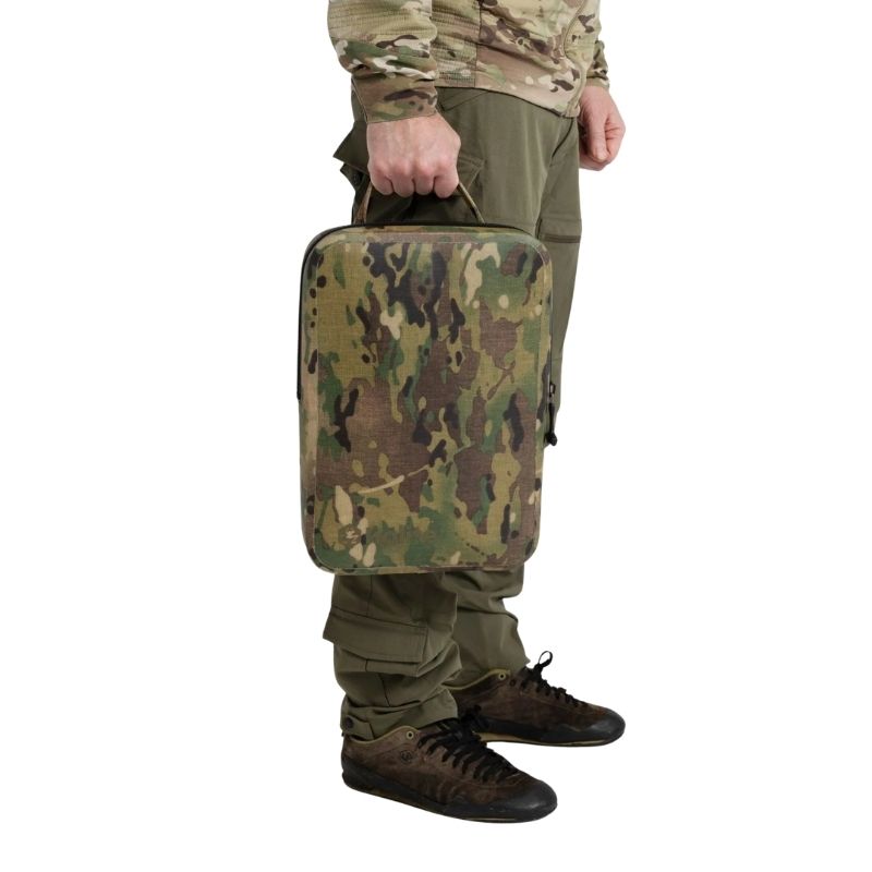 The Halite Carapace is a waterproof protective case designed to shield laptops, tablets, and small electronics during travel, field use, and outdoor operations. Built with a rugged laminated shell and sealed zipper system, it helps protect sensitive gear from moisture, dust, and rough handling while maintaining a slim profile that fits easily inside larger packs or travel bags.
