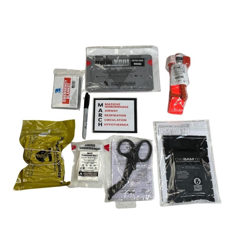 The Individual First Aid Kit (IFAK) – Intermediate is a comprehensive trauma care solution designed for law enforcement, tactical users, and prepared civilians who require enhanced medical capability beyond a basic kit. Built around the MARCH algorithm, this kit focuses on rapid hemorrhage control, airway support, and chest injury management in high-stress environments. Each component is selected for reliability, ease of use, and compatibility with modern trauma protocols. Ideal for duty belts, plate carriers, vehicles, or range use, this IFAK provides critical lifesaving tools when immediate care matters most.