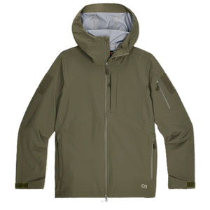 The Outdoor Research Allies Microgravity II Jacket is a technical, waterproof shell engineered for dynamic movement in harsh weather conditions. Built with a rugged 3-layer AscentShell™ construction, it delivers reliable protection from wind and rain while allowing moisture to escape during high-output activity. Designed with a lightweight, combat-fit silhouette that accommodates layering over mission-essential gear, this jacket pairs mobility with durability for tactical operations and field use. Functional details like an adjustable hood, cuffs, and secure pockets make it versatile and ready for unpredictable environments.